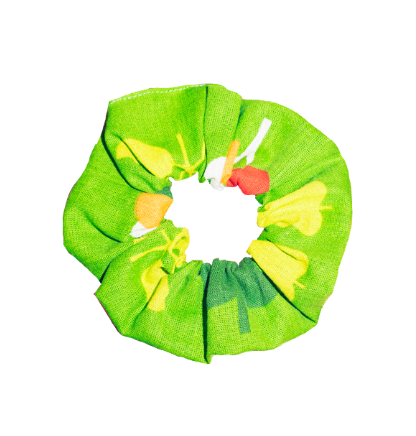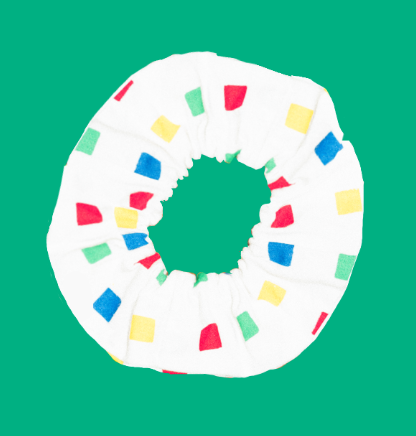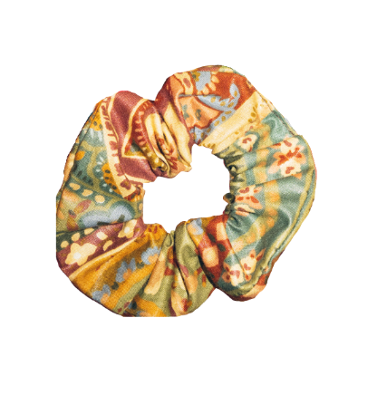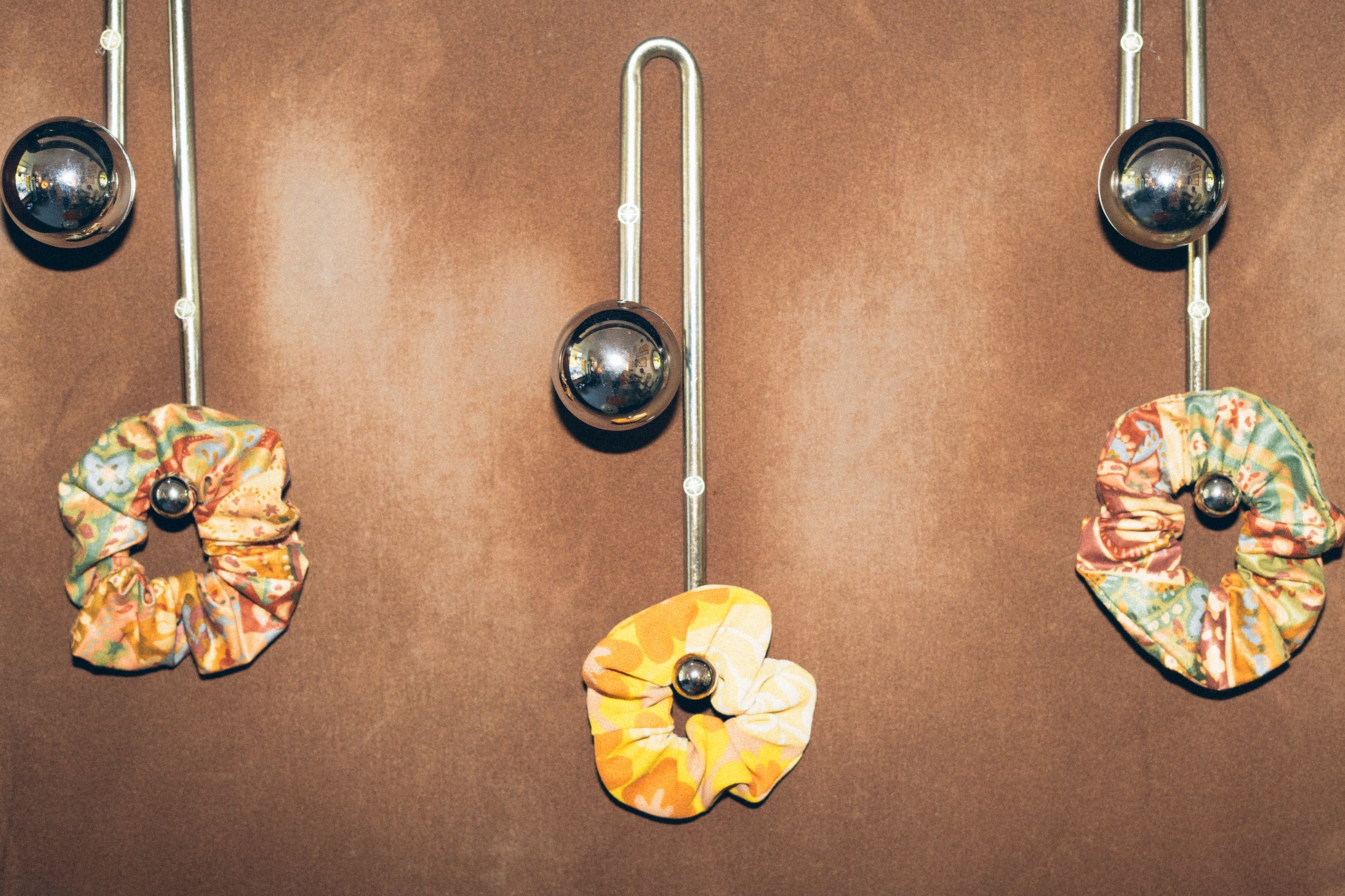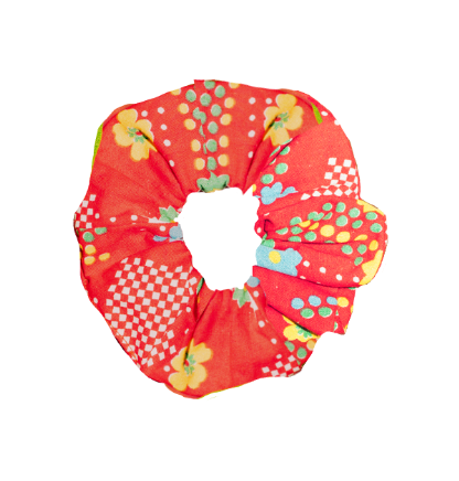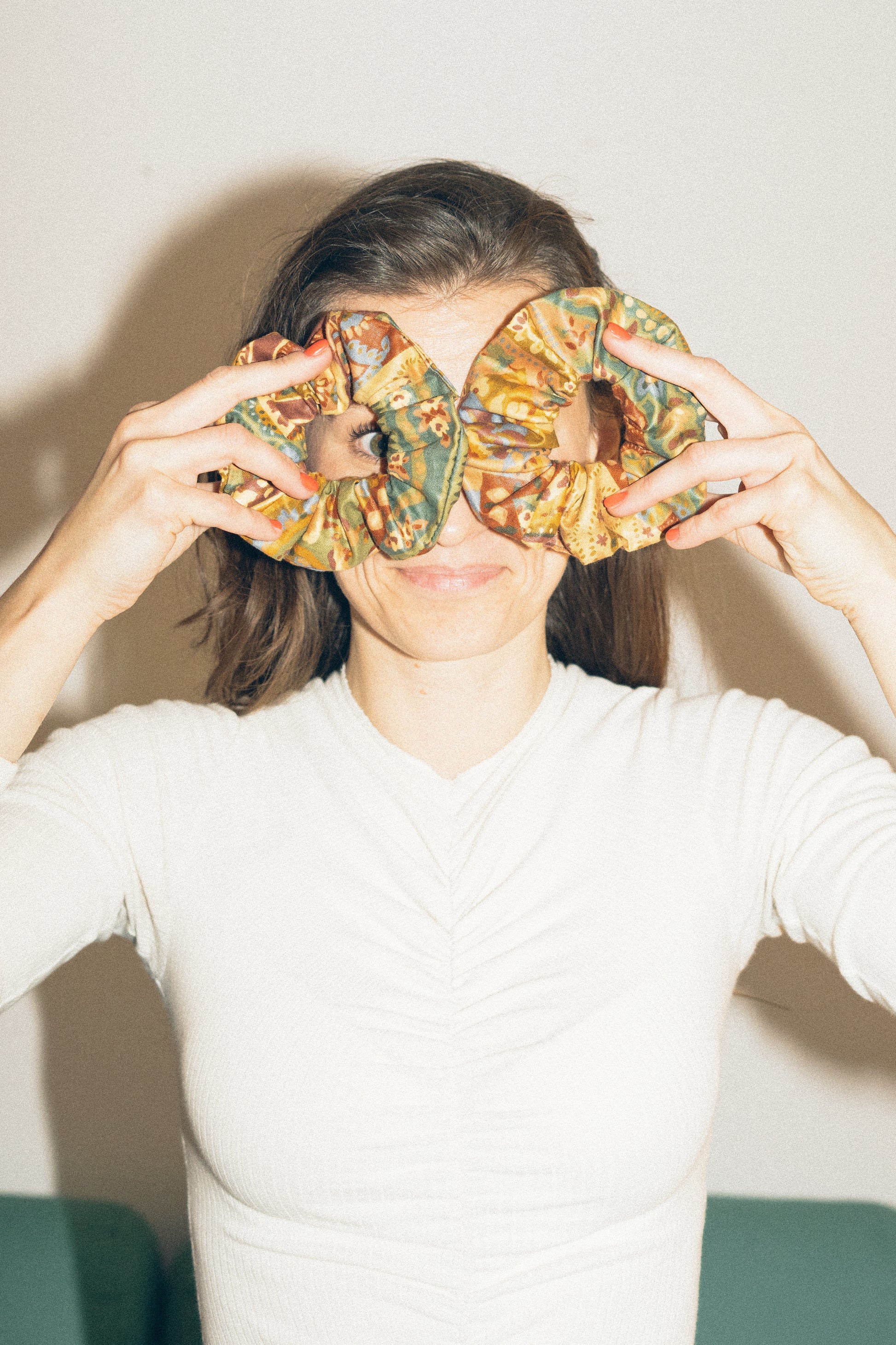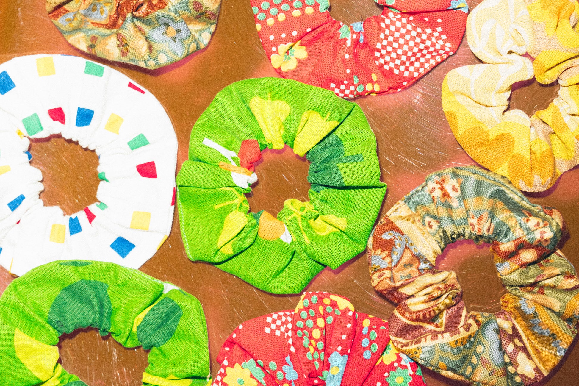 Ze skrawków, które zostają po szyciu mat, ze starych ubrań, powstają gumki do włosów typu scrunchie.